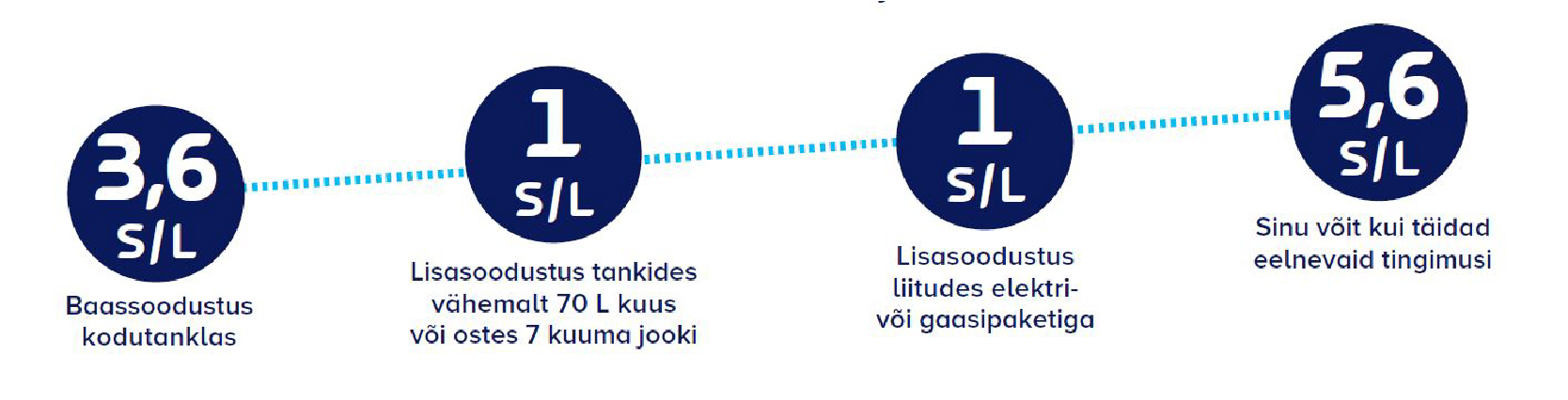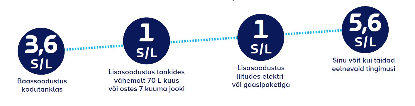 Eripakkumisena saad kohe kaardi tellides soodustust 5,6 s/l. Edaspidi saad soodustust ülaltoodud tingimusi täites.